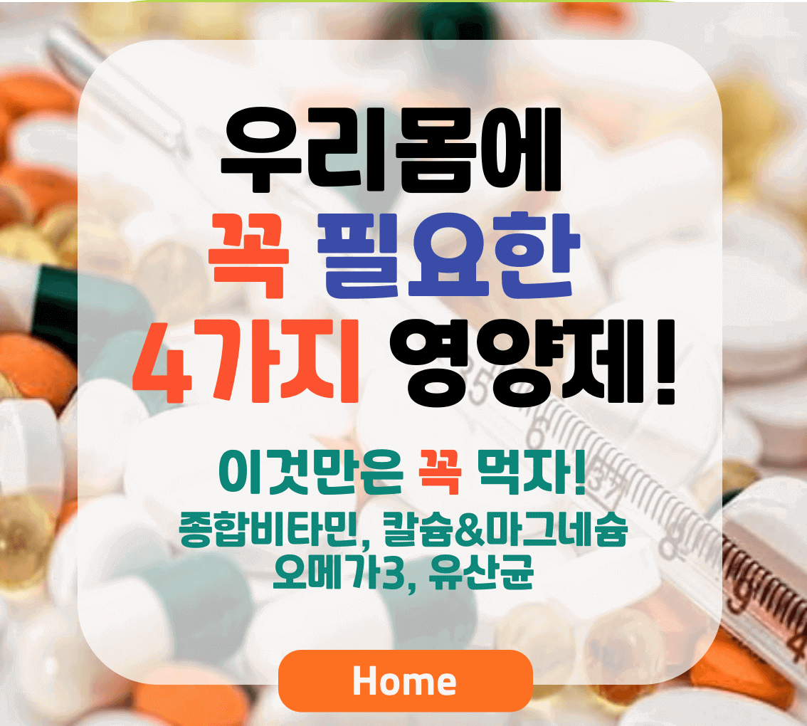 영양제 다들 열심히 드시고 계시죠? 문제는 영양제 종류가 너무 많고 또 그에 따른 제품도 너무 다양해서 먹다 보면 10가지도 넘게 영양제를 섭취하시는 분들도 많은 실정입니다. 그래서 오늘은 유튜버이신 고약사님 채널을 통해서 가장 기본적이지만 함량을 제대로 갖출 수 있는 효과를 볼 수 있는 영양제 구성을 말씀드리겠습니다. 이 구성은 안전하고 오랫동안 먹어도 부작용이 거의 없는 대신 효과를 제대로 볼 수 있는 영양제 조합이라고 합니다. 저 또한 말씀하신 제품들을 먹고 있고 만족하기에 공유하고자 합니다.